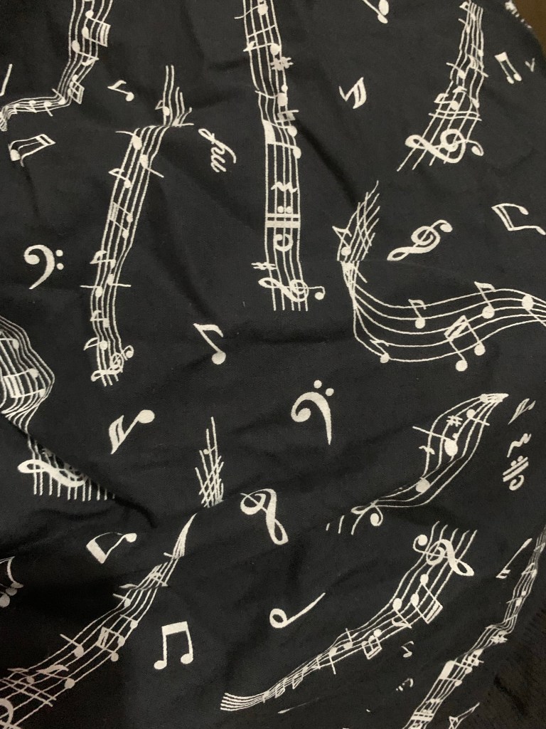Relembrando deste vestidinho preto e estampado de notas musicais que fiz para a apresentação do meu trabalho final de conclusão de curso (TCC) de Artes Visuais, lá em 2015. (Pra quem não sabe: minha primeira graduação é como artista visual, e trouxe as minhas experiências com moda e costura, com o título “A linguagem da moda na arte e na educação”).