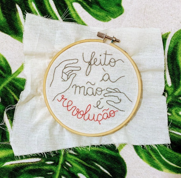 - Borde ou faça um desenho representativo no tecido usando o ponto atrás aprendido no vídeo acima.